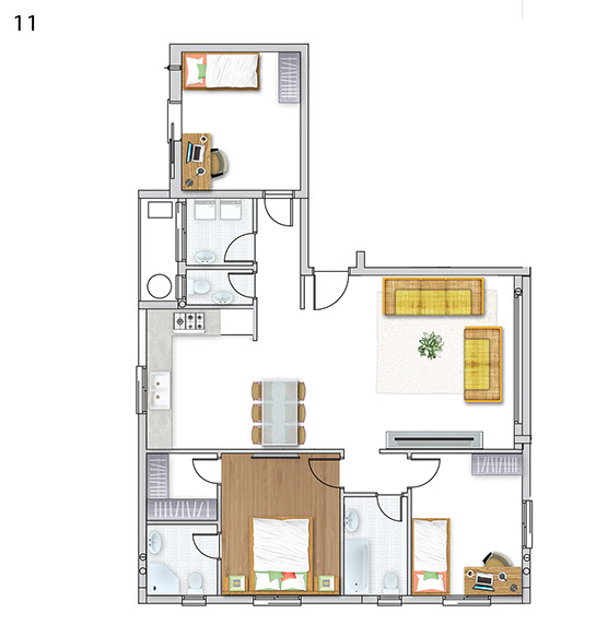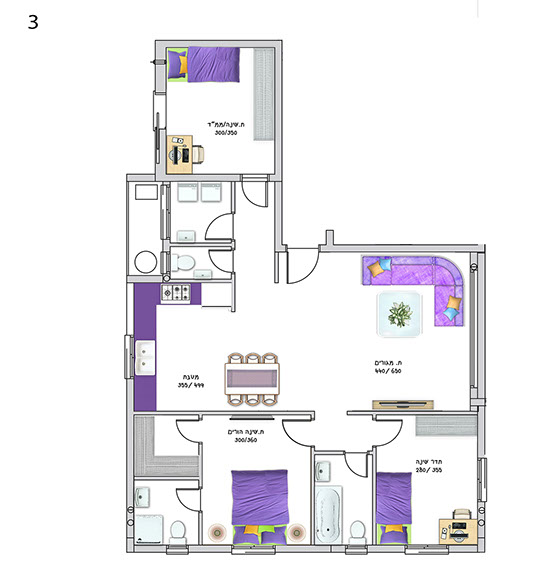 תוכניות דירה צבועות לפי דגם ניבחר*